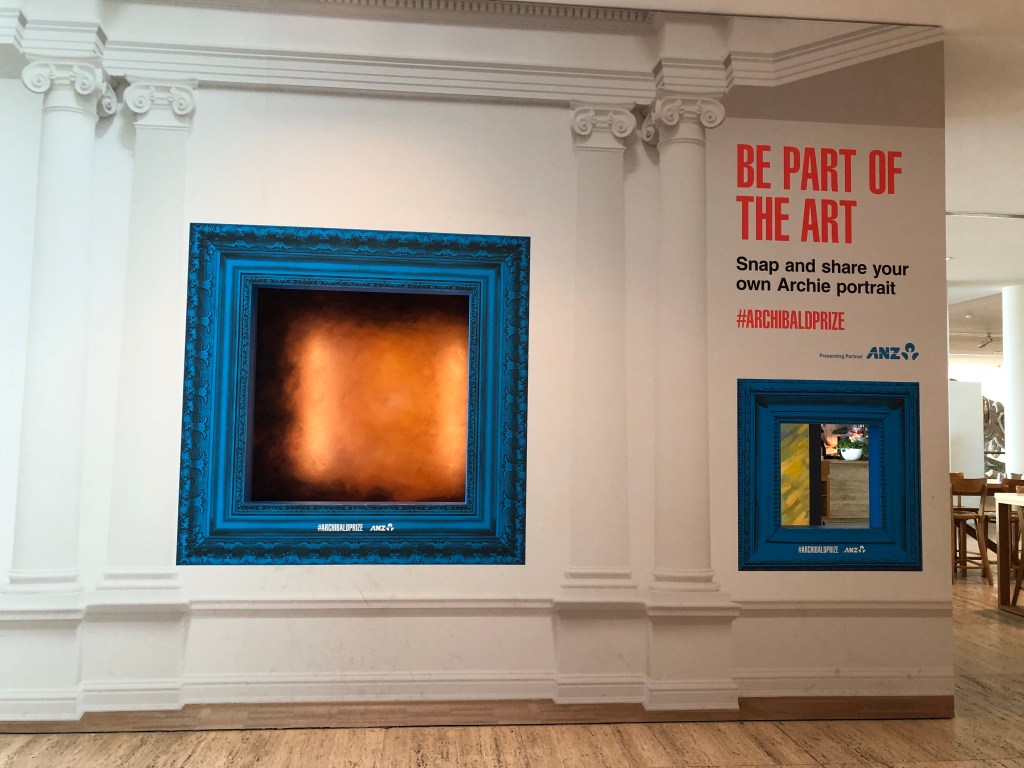 Another positive for me was the inclusion of children in the exhibition. There were labels for children (also a negative but I’ll get to that later) and, my personal favourite, a space dedicated to fun interaction. There were three large frames mounted on a wall and children/adults could stand behind the wall, move into a frame and have their photo taken. The idea being that your portrait was now part of the Archibald.