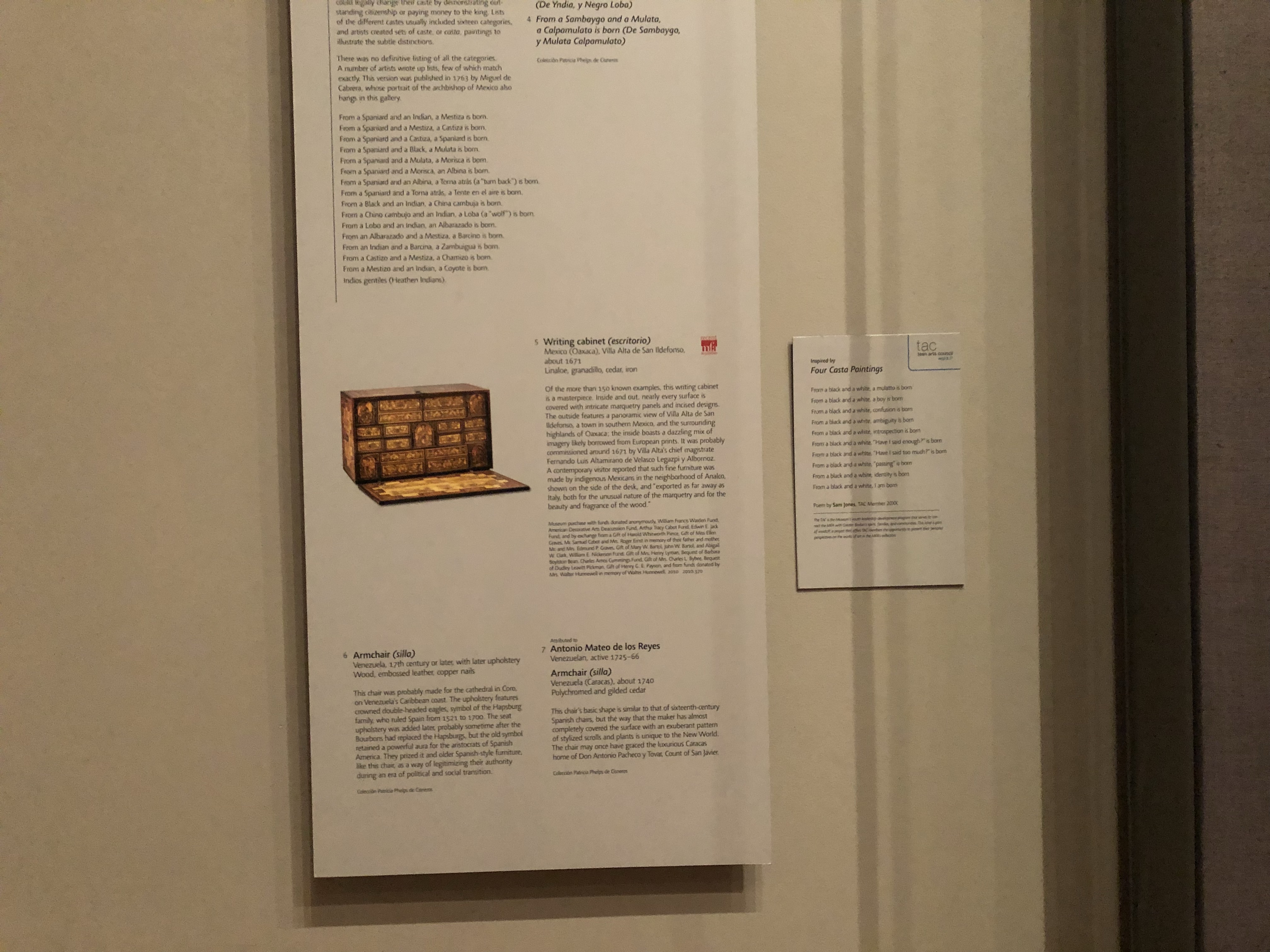 Something that I am always so interested in seeing are recent museum acquisitions. I don’t know why, it just makes me happy to see institutions still collecting significant objects. A writing table from Mexico immediately caught my attention. While reading about the desk I noticed a small red and white symbol on the label. On closer inspection, it was specifying that this object was a recent acquisition.