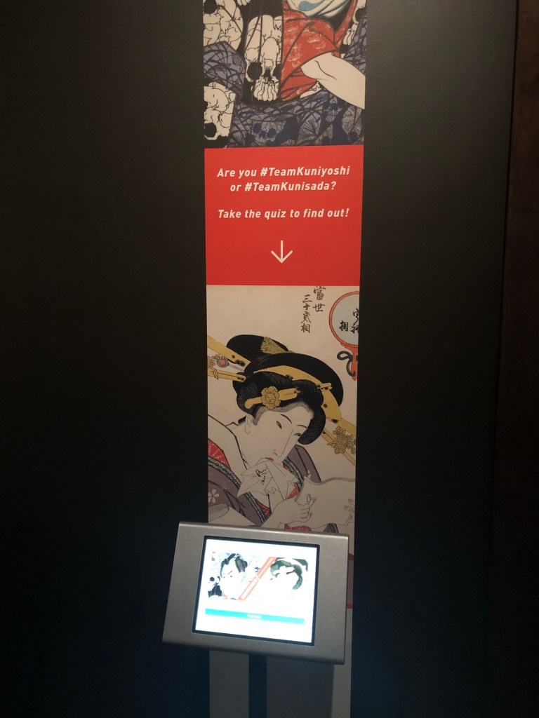 Finally, the exhibition had an iPad containing a quiz to discover if you were more like Kuniyoshi or Kunisada. Having this sort of “pick a side” feel to the exhibition was very interesting and I enjoyed how it wasn’t just a gimmick but did draw on a historical rivalry.