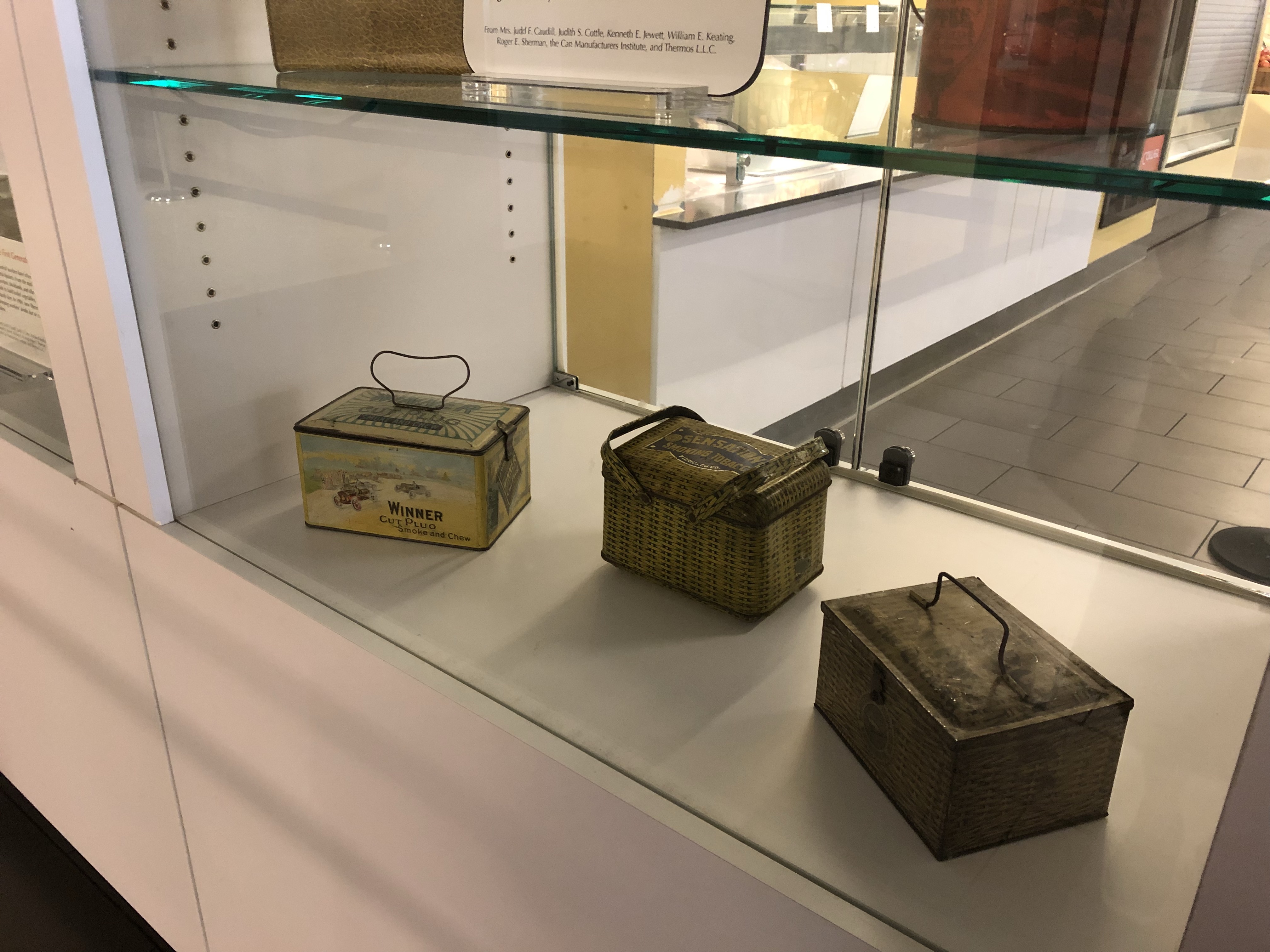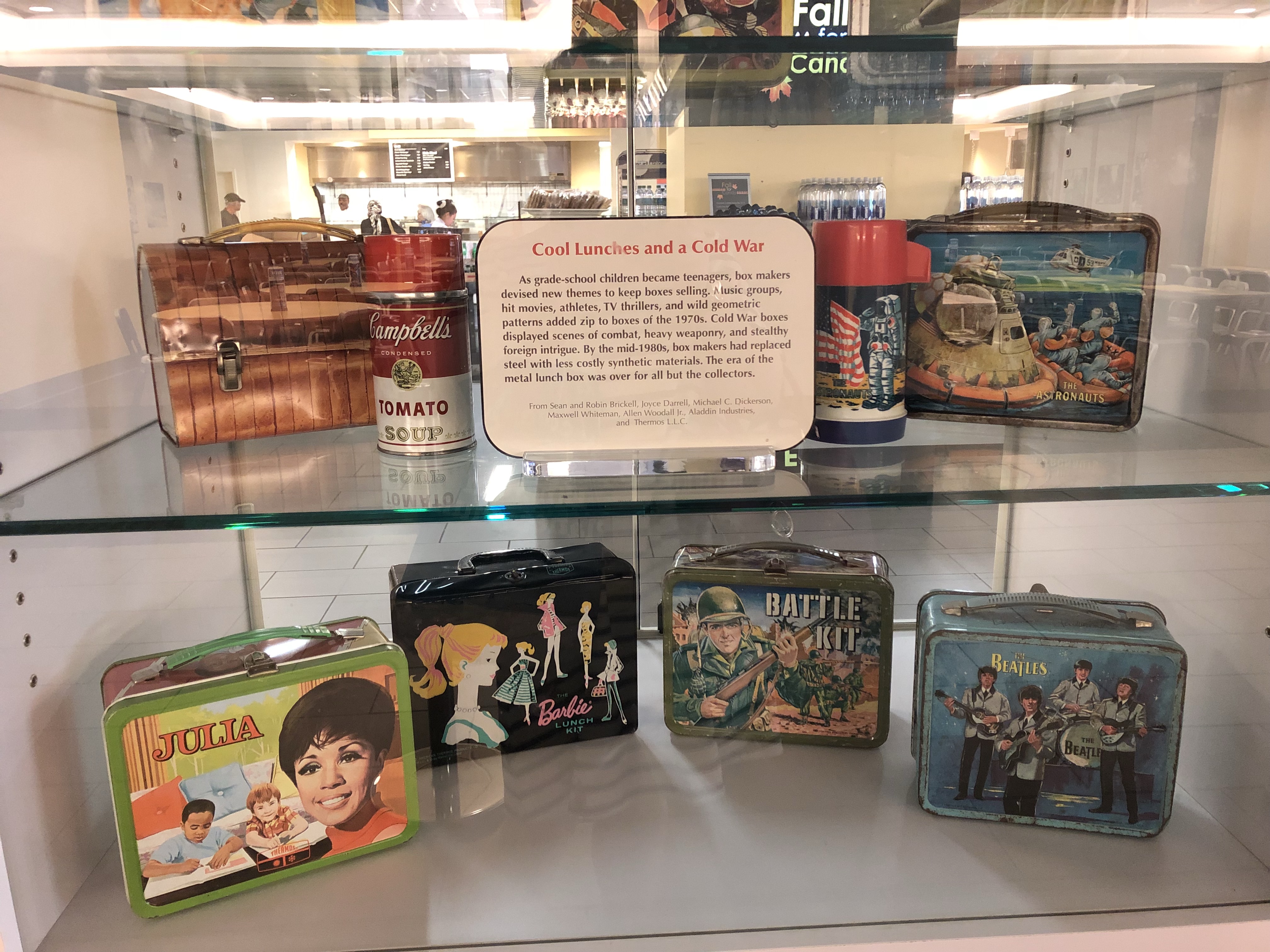 One of my favourite displays was actually in the lower level cafeteria. There was a small exhibition on children’s lunchboxes throughout the ages. I loved seeing the really early examples from the 1910s and 1920s. The little wicker baskets were absolutely adorable. There was also an attempt to link the lunchboxes to wider historical moments and trends. For example, “Cool Lunches and a Cold War” explored how lunchboxes reflected the Cold War period. New designs were released showing combat scenes and the traditional steel box was slowly replaced by synthetic materials. Highlight lunchboxes included The Beatles and The Astronauts.