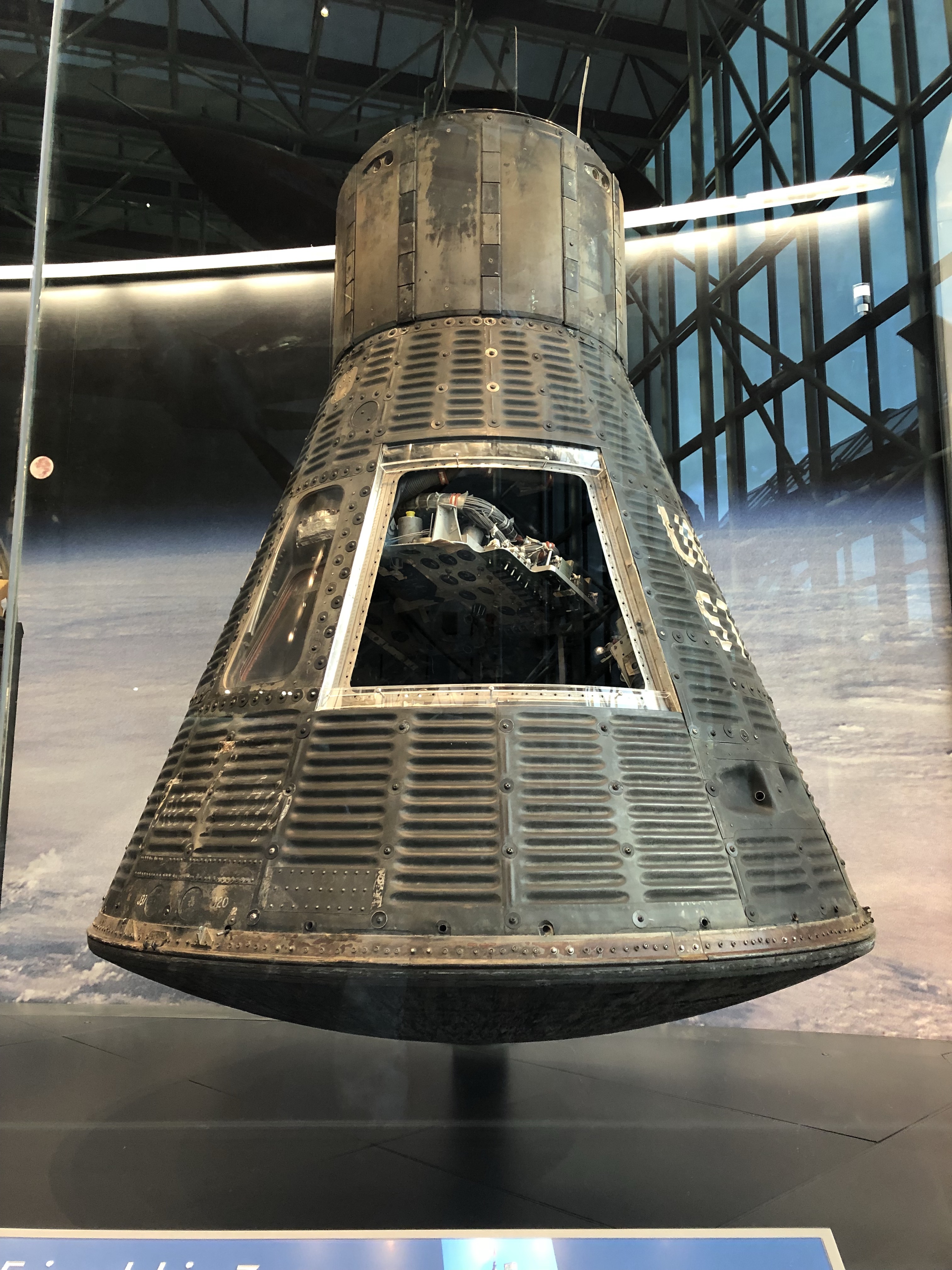 Another highlight object was the Friendship 7, a Mercury Spacecraft. Piloted by John Glenn, it orbited the earth three times in 1962. My claustrophobia set in when I saw the spacecraft. It was tiny. Sure it was designed to fit only one person, but, it was seriously small. I couldn’t imagine orbiting anything in that craft let alone landing in it!