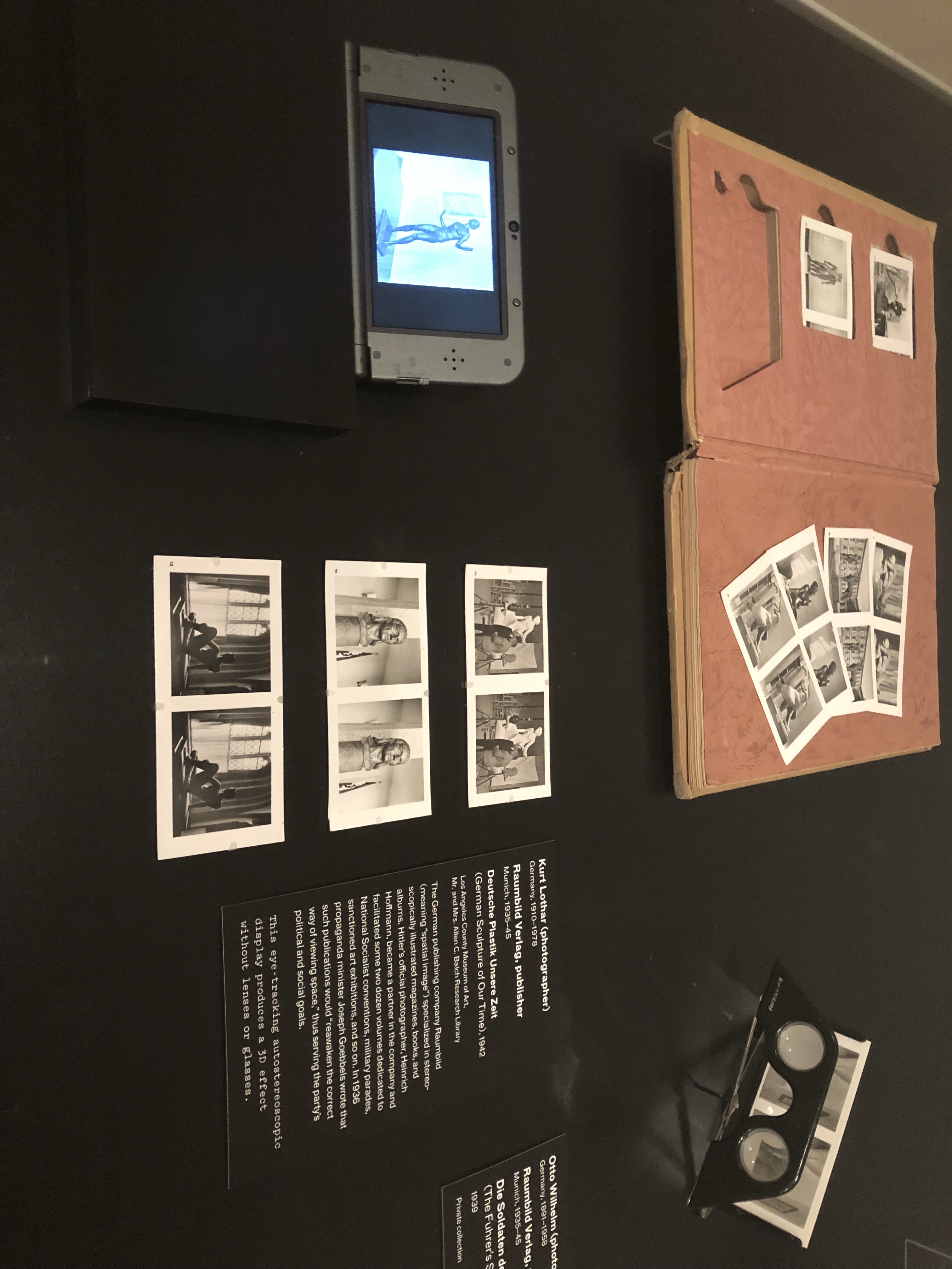 Dotted around the exhibition space were also small cabinets containing historic objects. These included aerial surveillance images and machines used to gain a sense of depth during World War II.