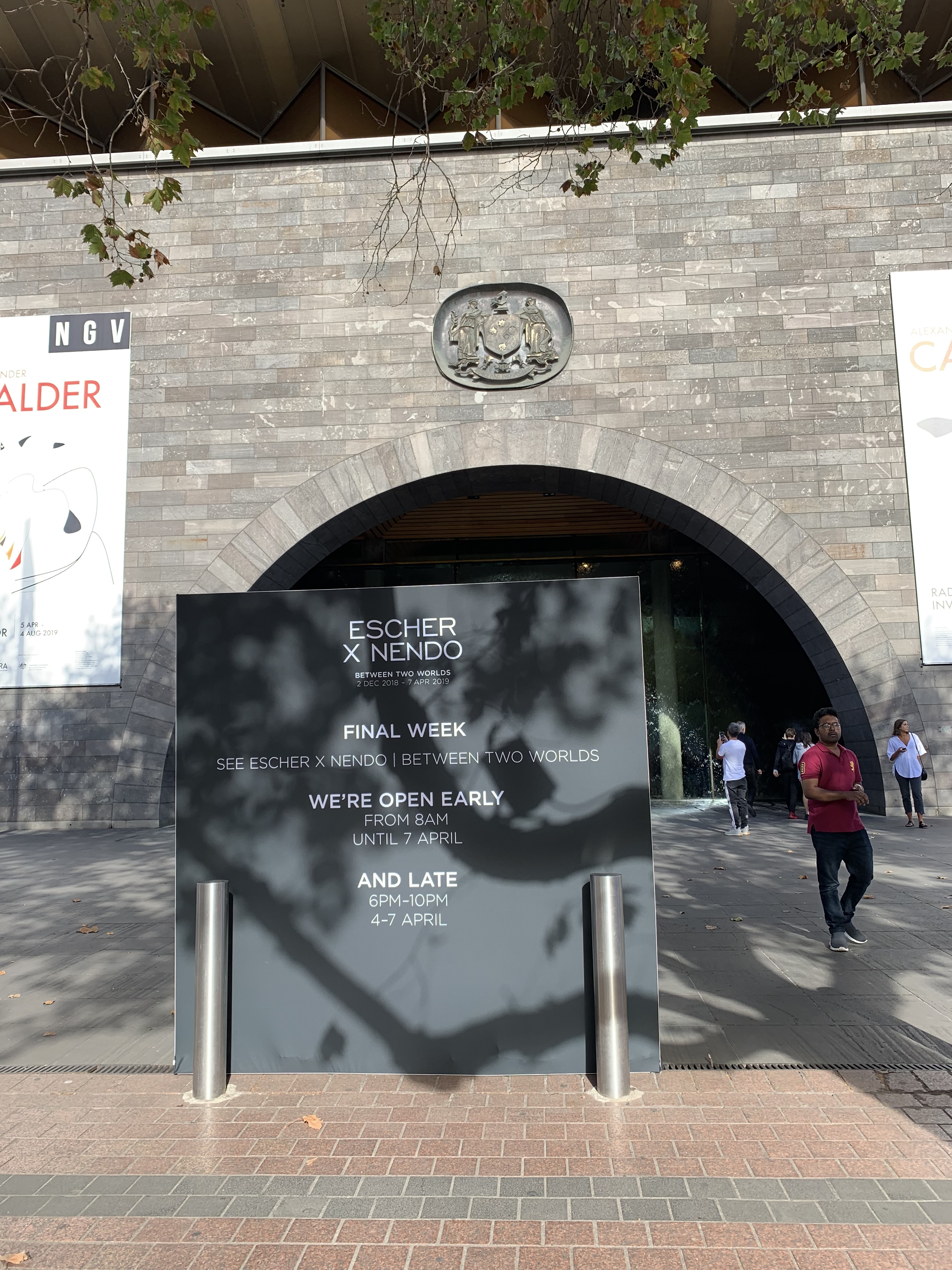 Unfortunately, Escher x nendo | Between Two Worlds is finishing on Sunday 7 April 2019. To see what is coming soon, make sure you visit the NGV website.