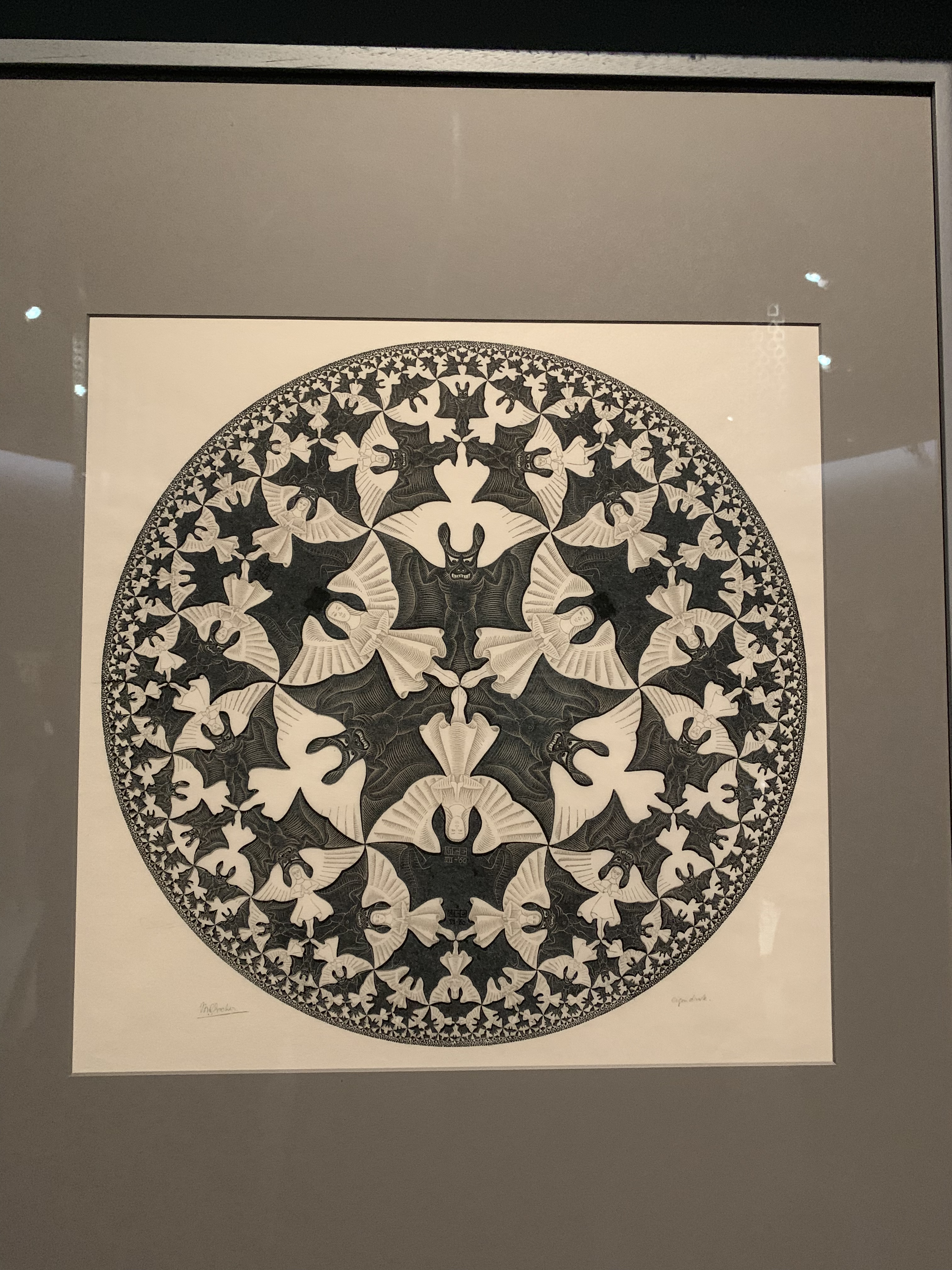 Apart from the beginning and the end, everything in between is really well curated. Each space feels as though it has its own identity that perfectly suits the theme being represented. The chronological layout allows visitors to trace the evolution of Escher’s work. It was interesting to see how the layout was not only chronological, but also, thematic. This was aided in part by the fact that Escher focused on quite distinct styles at various stages of his life.