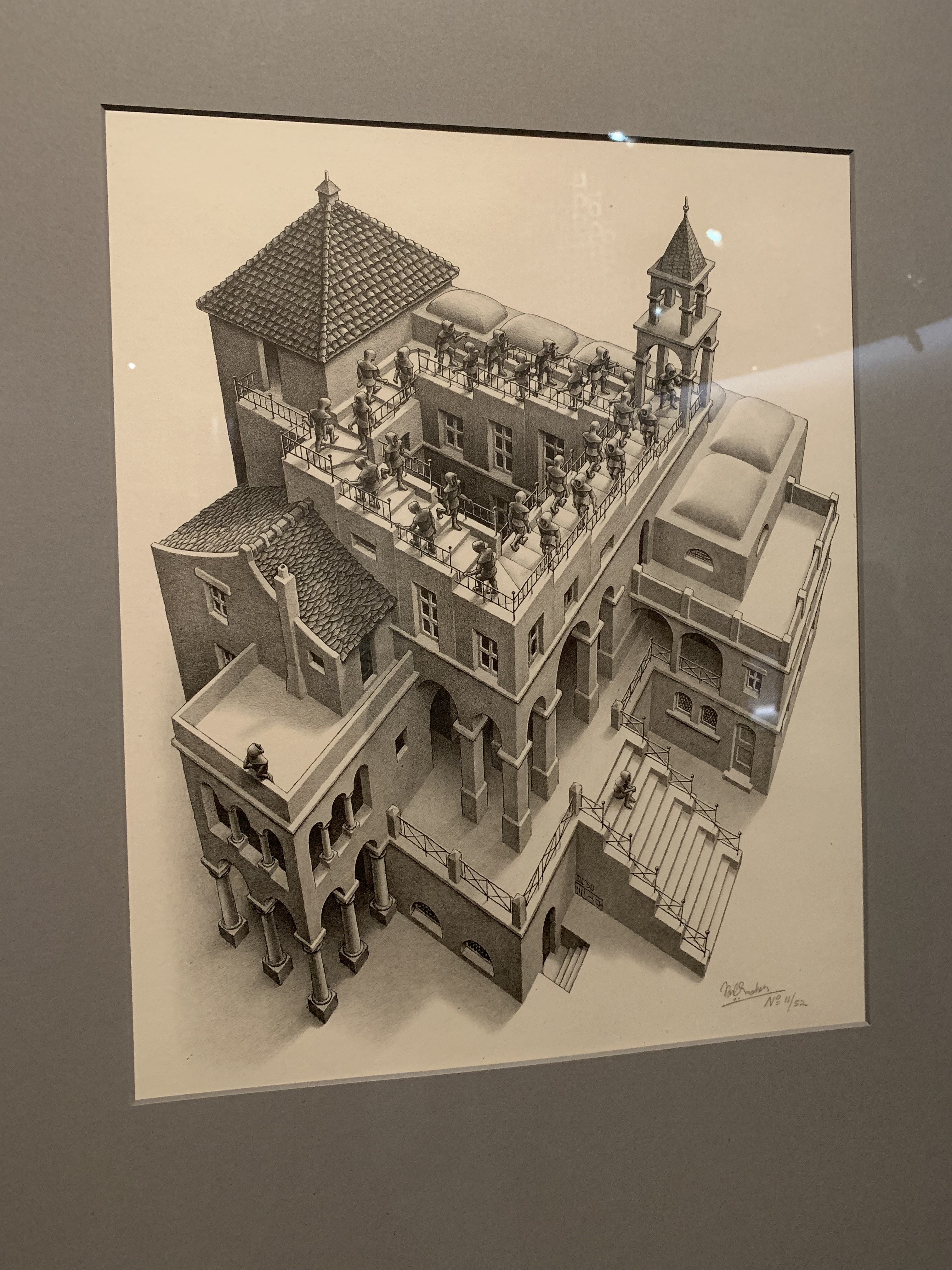 During a weekend getaway to Melbourne, I made sure to visit the National Gallery of Victoria (NGV) to see Escher X nendo | Between Two Worlds. I was quite familiar with the works of Escher having seen examples in optical illusion puzzle books. I was particularly excited to see the work titled Ascending and descending – luckily, it was in the exhibition!