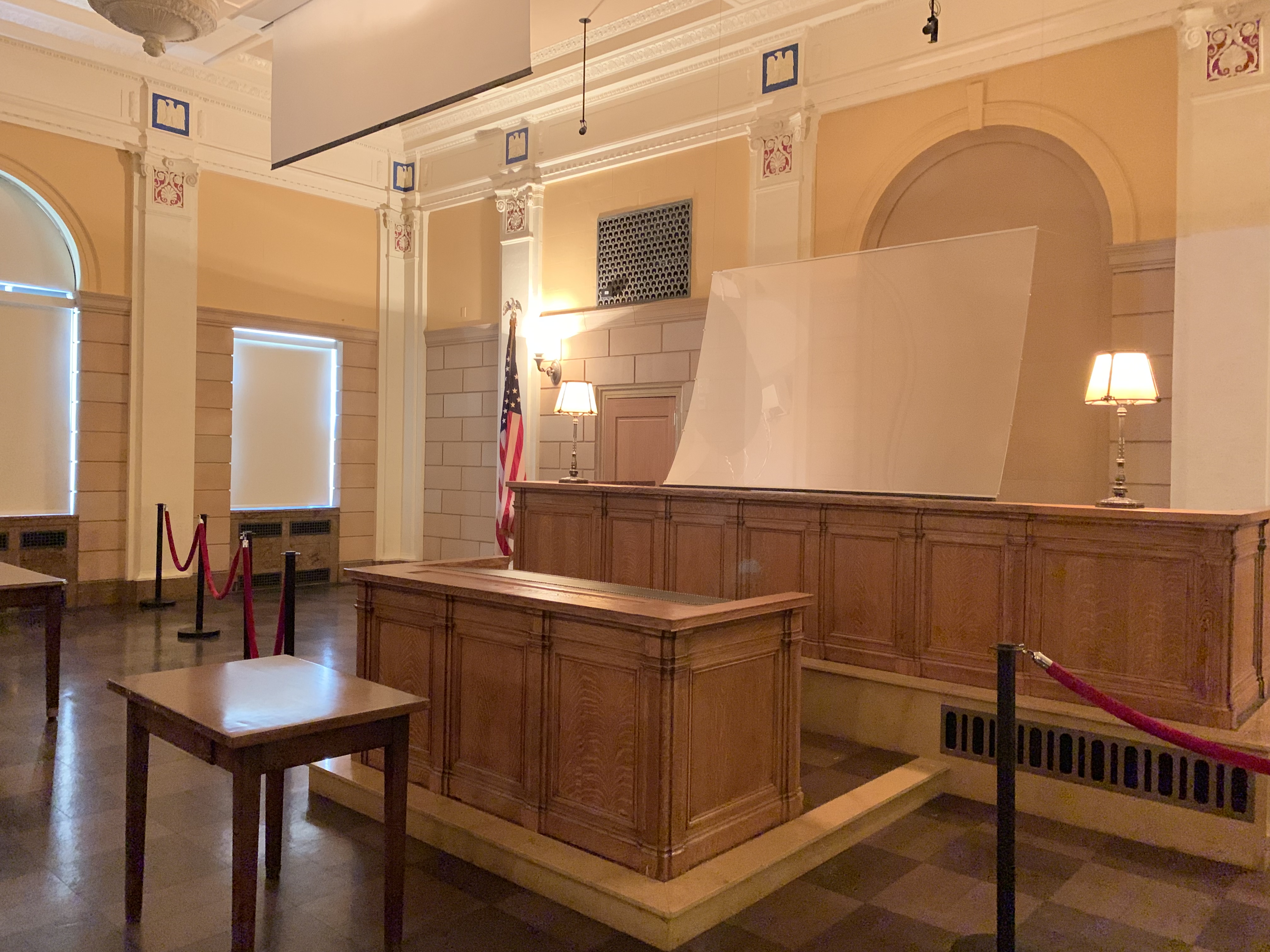There are also a significant number of short films playing throughout the Museum. For example, on the second floor you can sit in the same courtroom that held a Kefauver trial and watch excerpts. On that same level are a number of display screens sitting on a dining table. You can order a series of different cities from the menu and read all about how The Mob operated in that city.