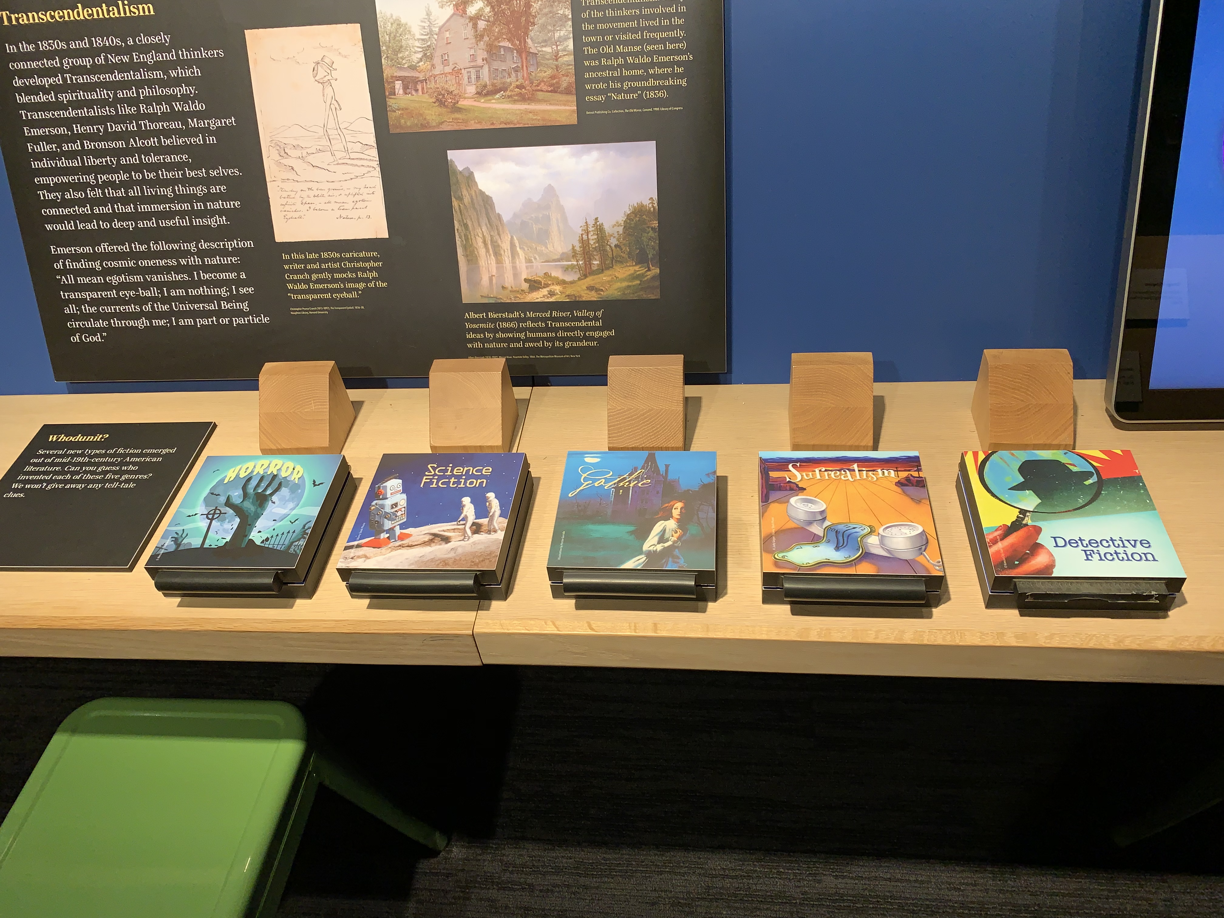 This exhibition chronologically covers the life and work of 100 American writers. Each has a photograph and label that can be rotated to discover more information. Some have interactives while others have more in-depth thematic panels.