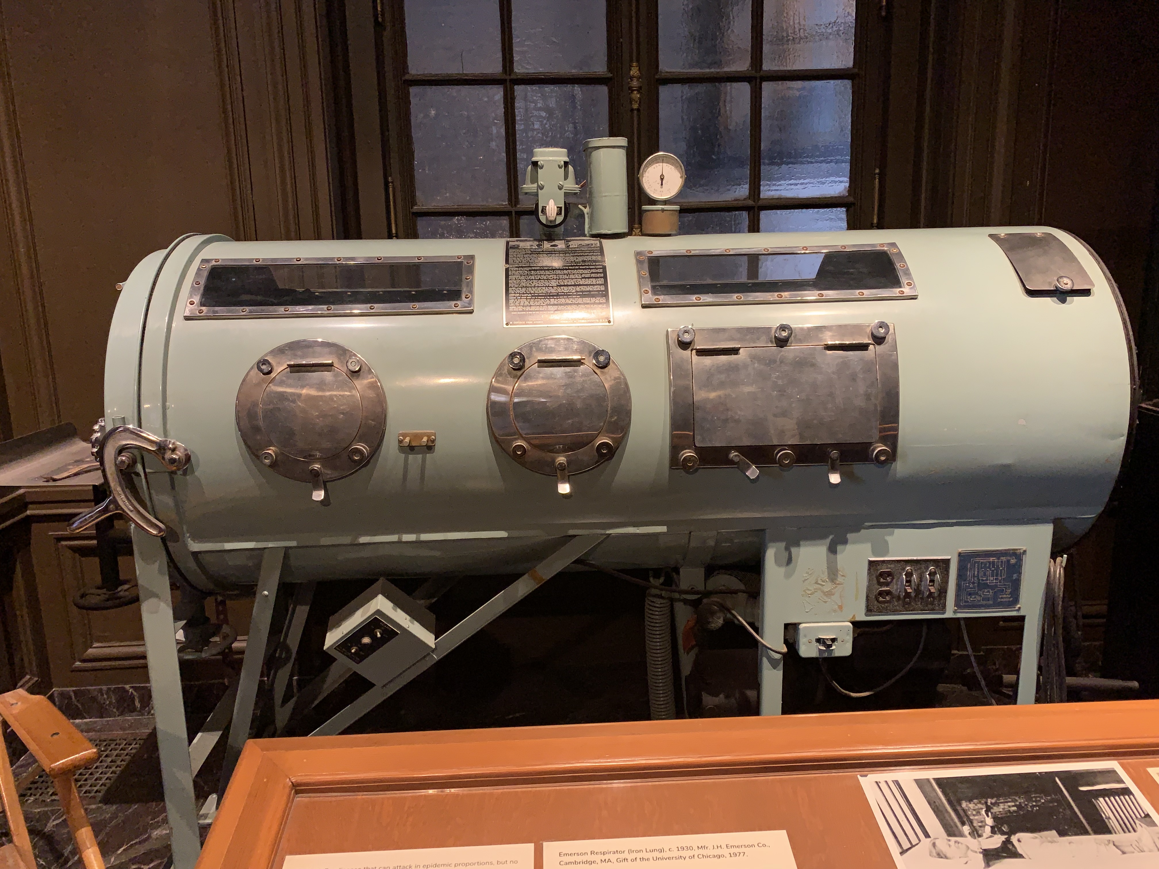 Another object that I love is this iron lung. The history of polio treatment is like something out of a horror story. Imagine being in this machine with just your head poking out as it essentially breathed for you when your muscles became too weak.