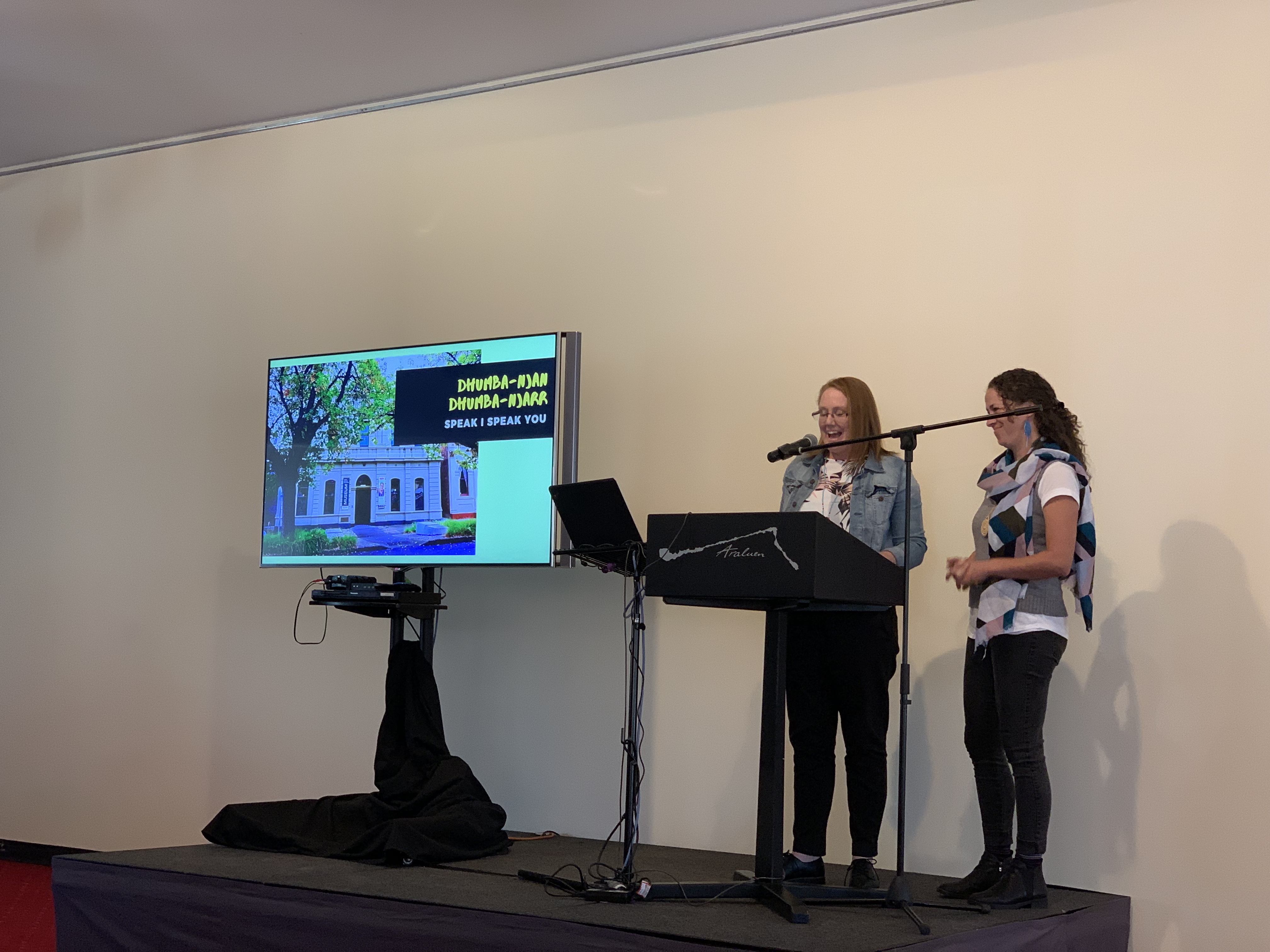 In the first presentation mentioned above, Nilaweera and Wandin focused on their journey creating the exhibition dhumba-njan (speak I) dhumba-njarr (speak you) now on display at the Yarra Ranges Regional Museum. There were so many memorable quotes from the presentation including, “a good working relationship makes a bloody good exhibition” and “we cannot move faster than the community we seek to represent – we must move at their pace” (the latter quote has been paraphrased). It served as a reminder that sometimes you have to take a chance and step outside your comfort zone.