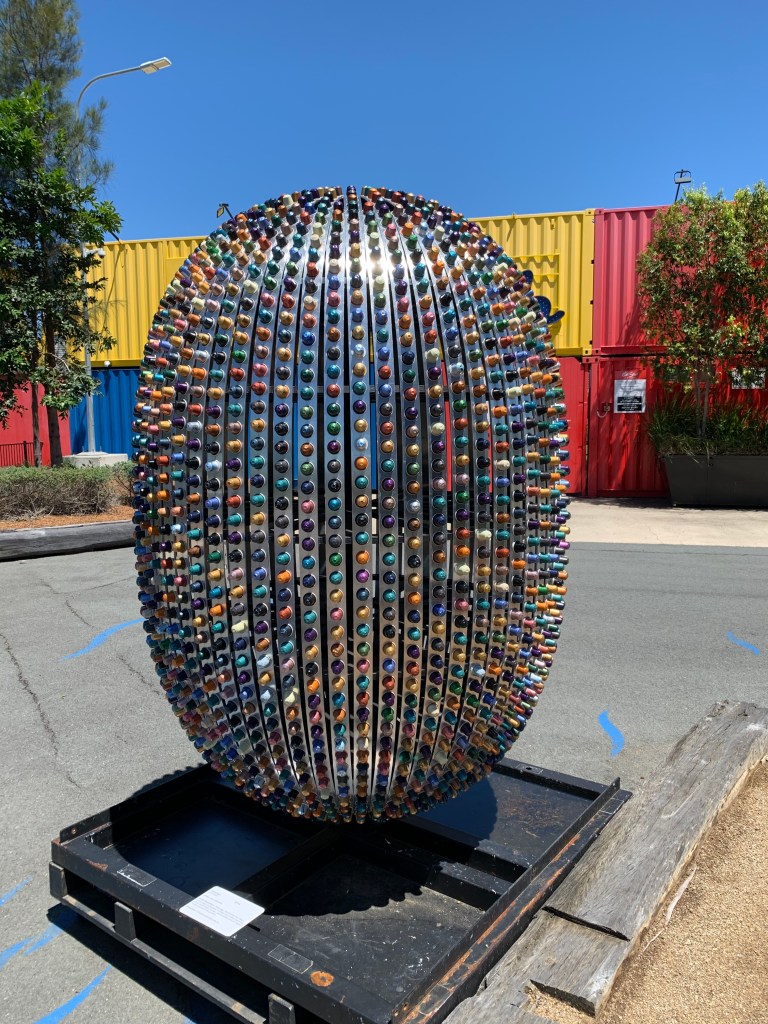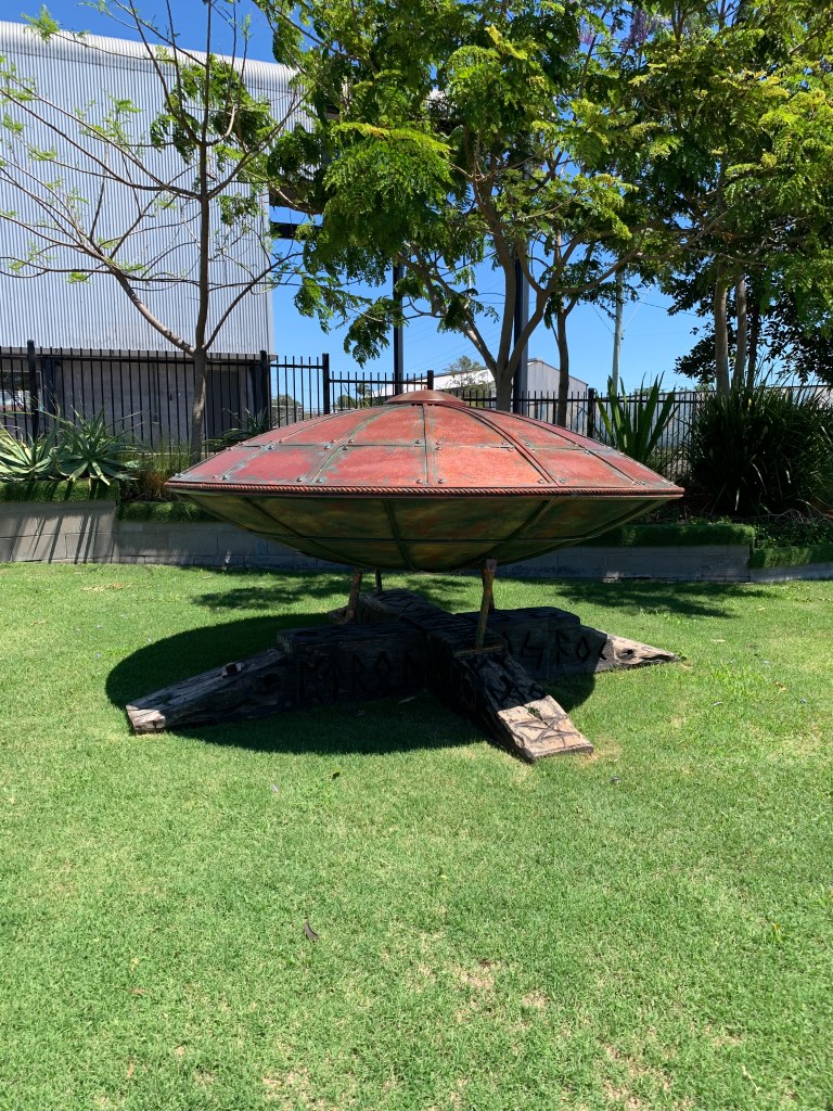 Although the artist statement didn’t shed any light on this sculpture (stating the background of this sculpture is unclear), I did like how it was in the shape of a UFO. The artist does allude to this sculpture being representative of early Australian migration when many were arriving by boat and being sailed down the Brisbane River.