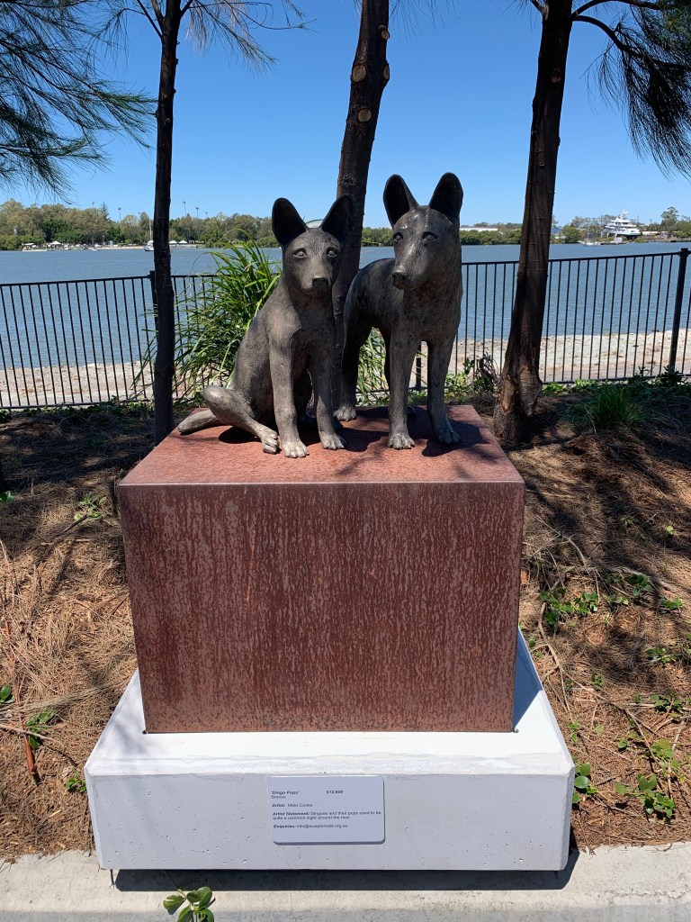 I had to include this sculpture, because dogs. Also, it provides a window into the past as the artist statement reveals how dingoes and their pups were a common sight around the River. As it’s made from Bronze, it was visually stunning to see with so much detail.