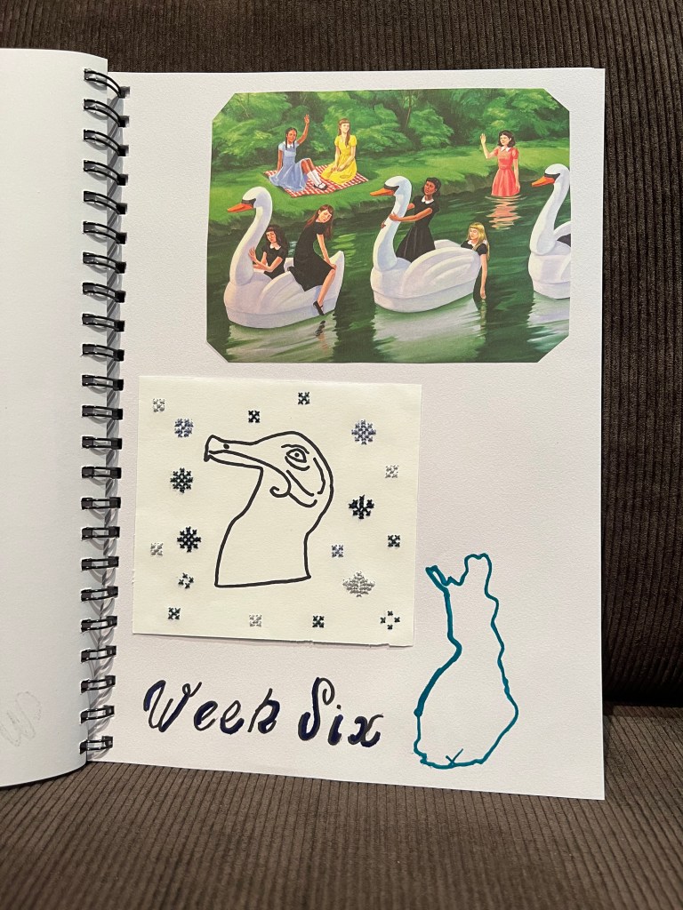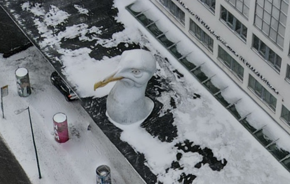 When I clicked on the link to see the exterior of the Museum, I noticed two things. Firstly, the snow on the rooftops of buildings surrounding the Museum. I love winter so much and seeing snow was wonderful. Secondly, the seagull head at the entrance to the Museum. I had to look twice to make sure it was, in fact, the head of a seagull. I can confidently say I’ve never seen a seagull (real or not) in the snow. So, to capture this weird juxtaposition, I have drawn the seagull and cross-stitched some snowflakes.