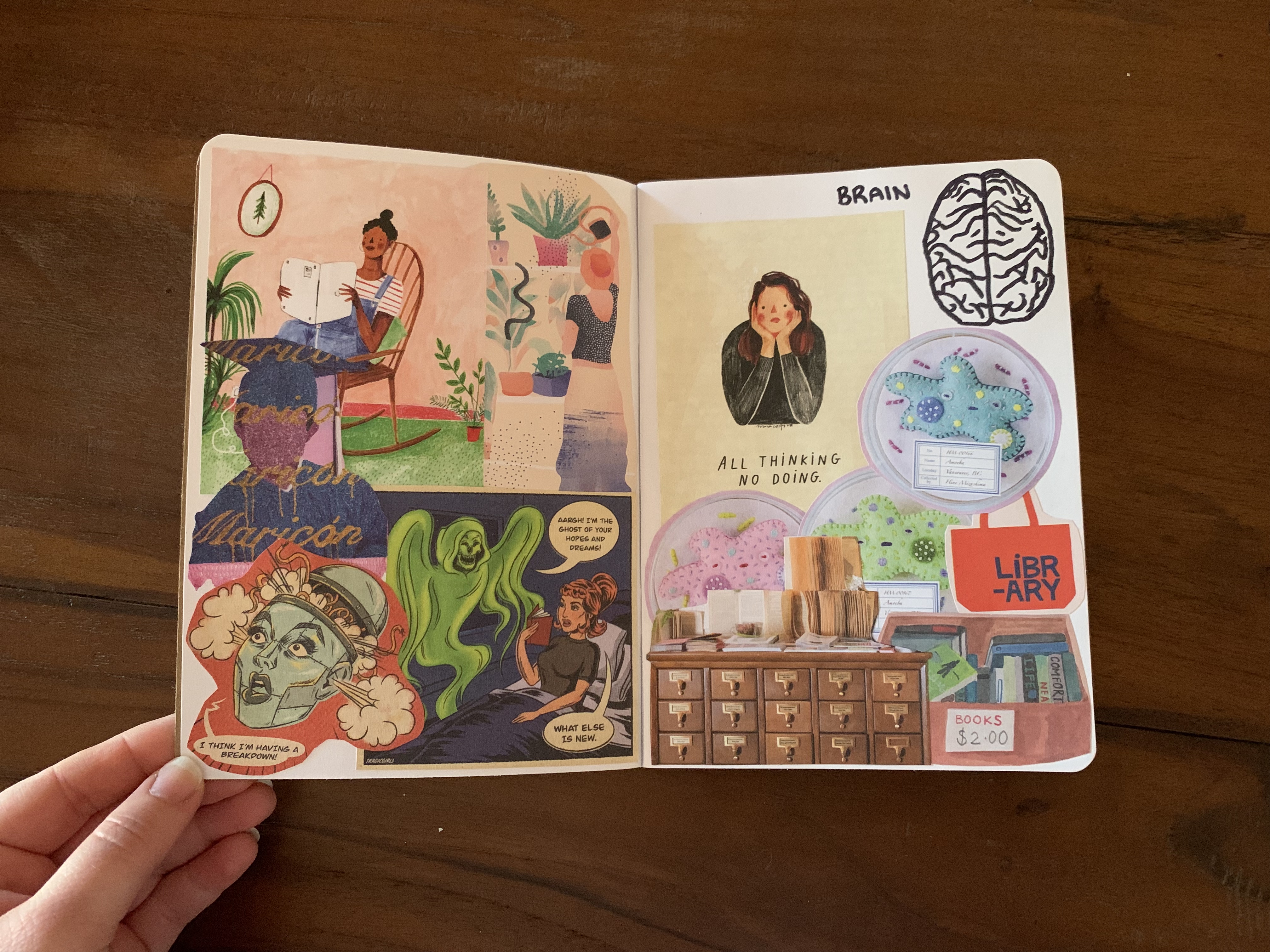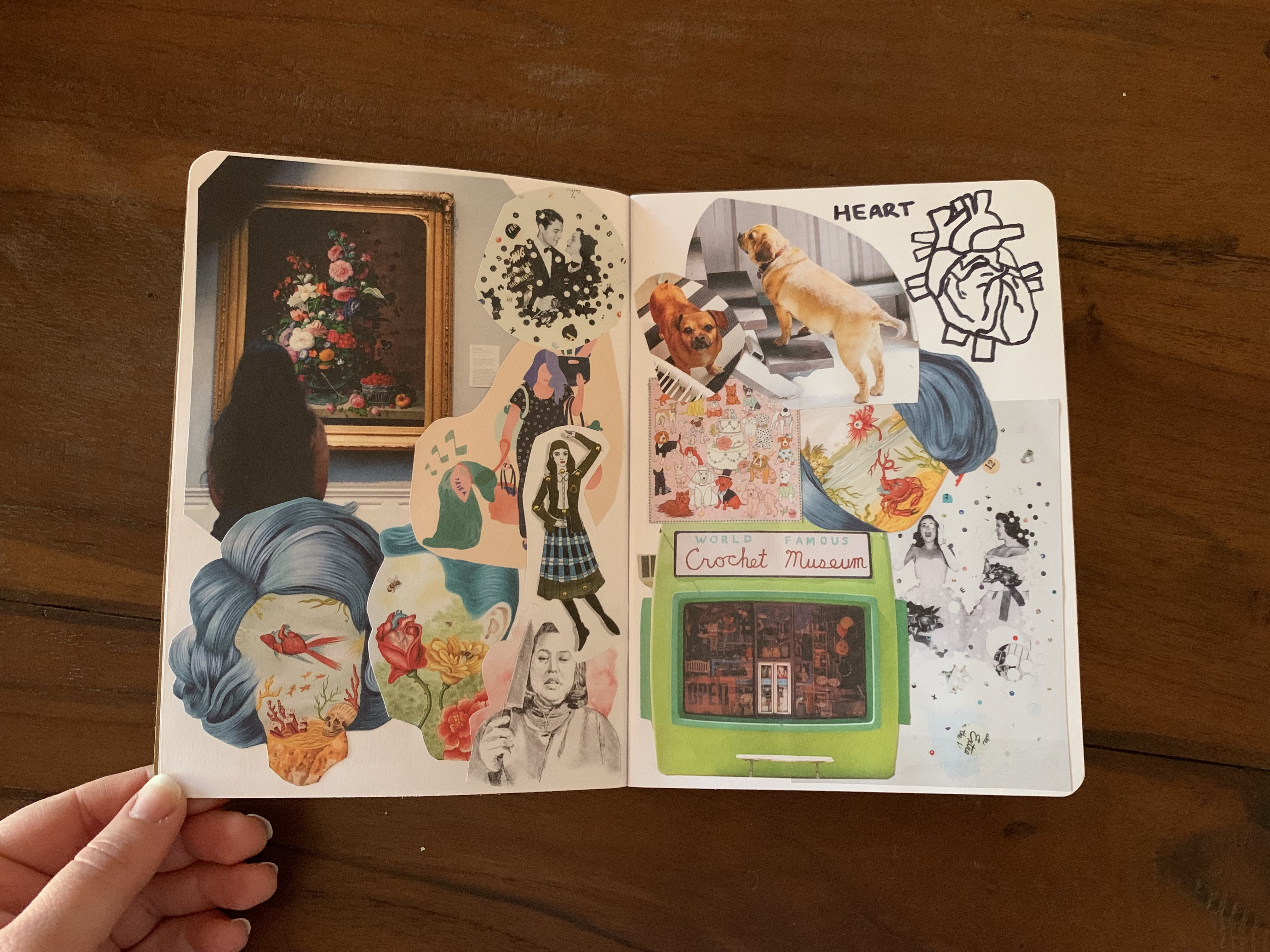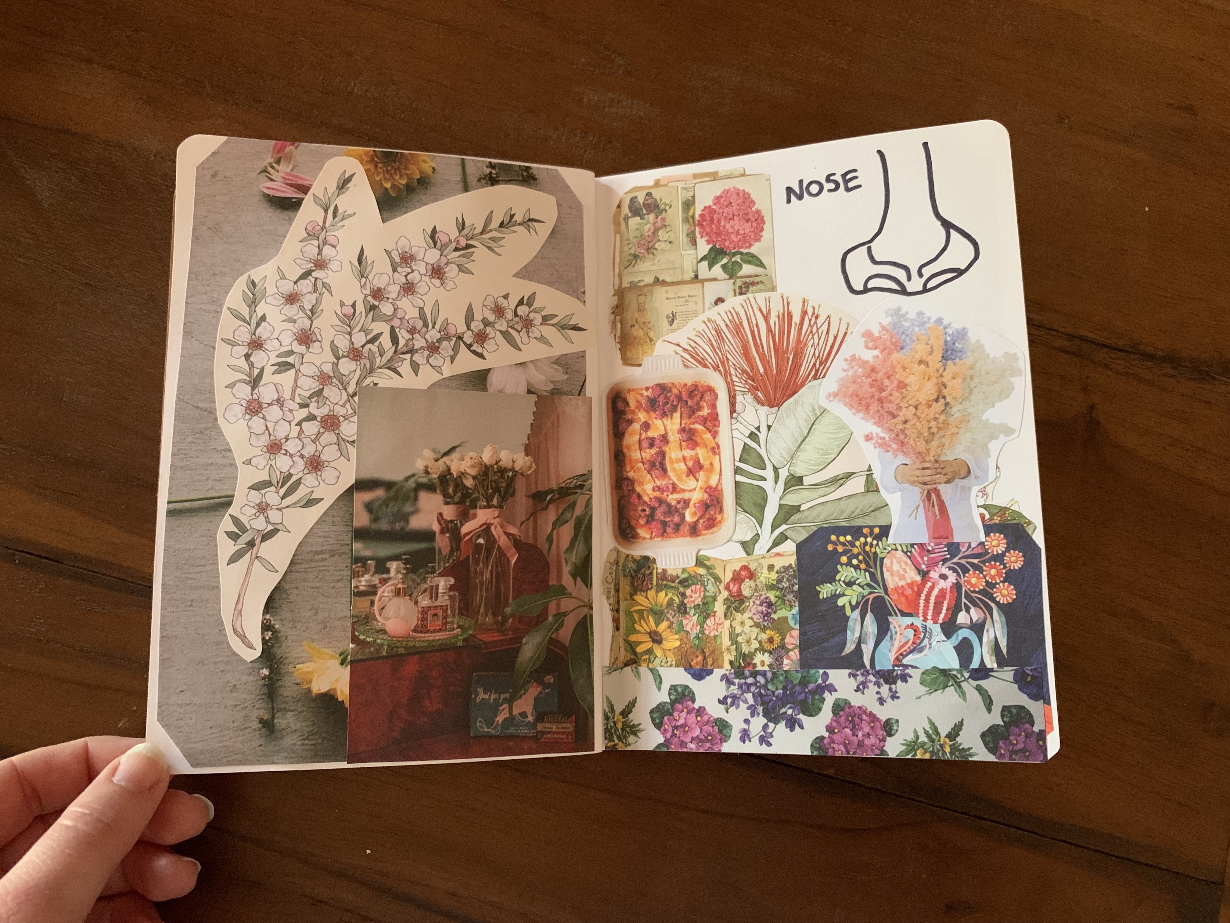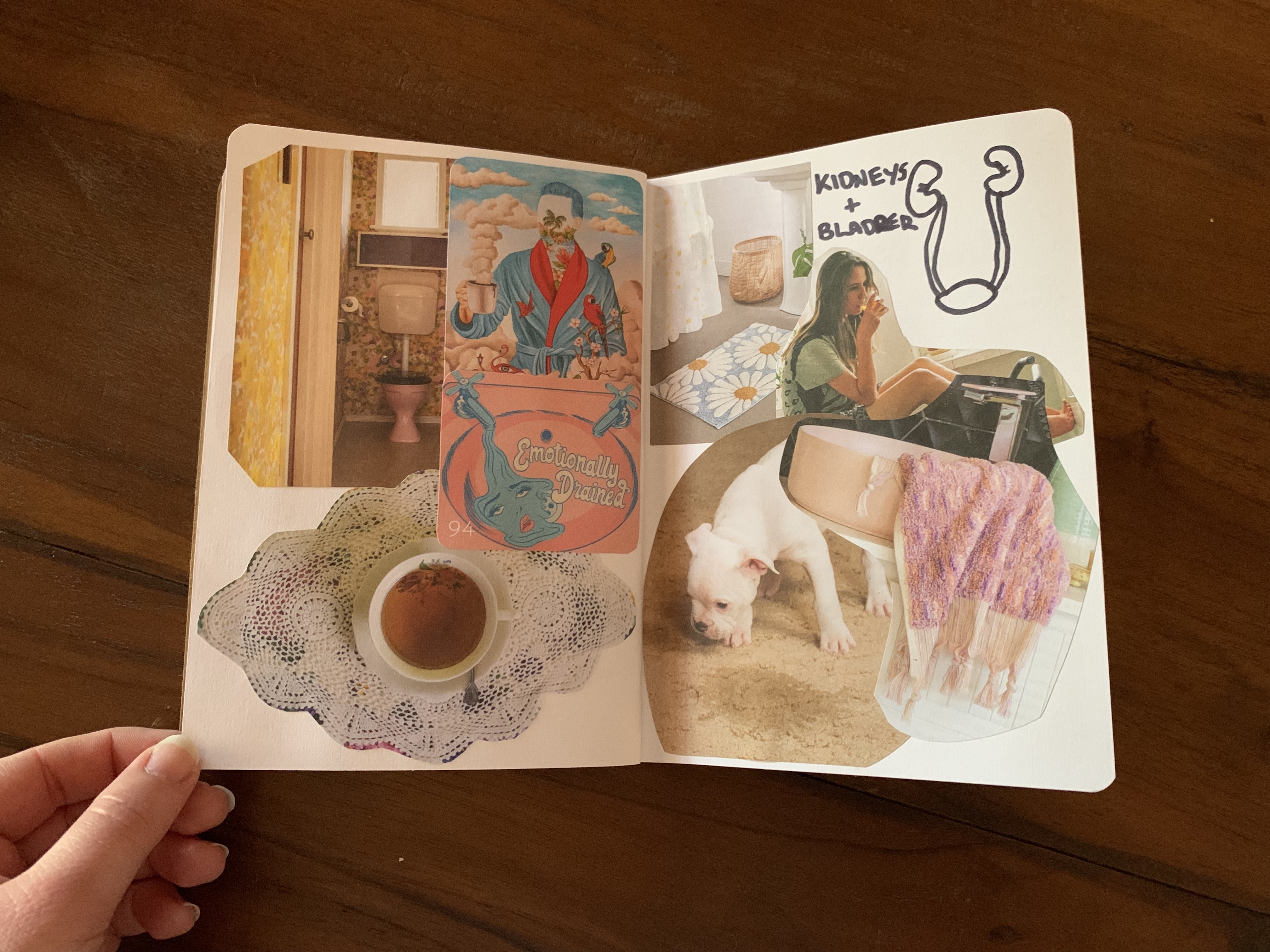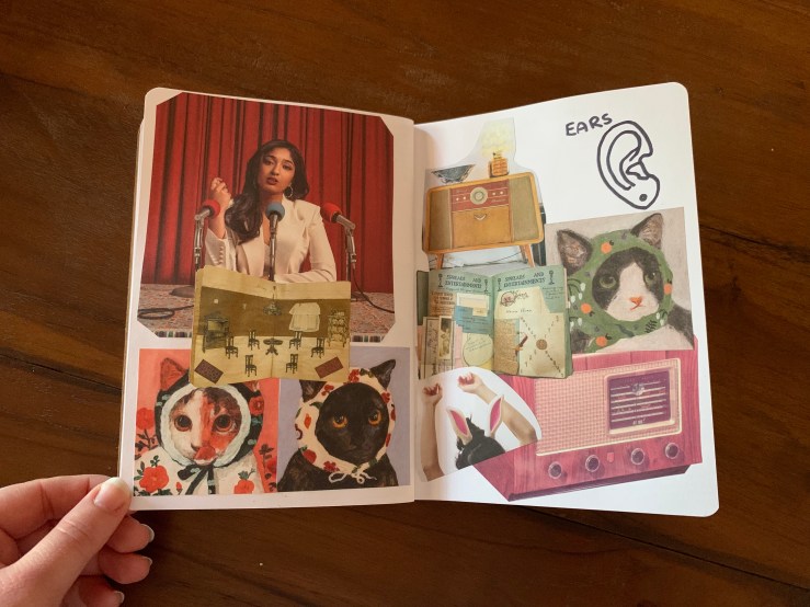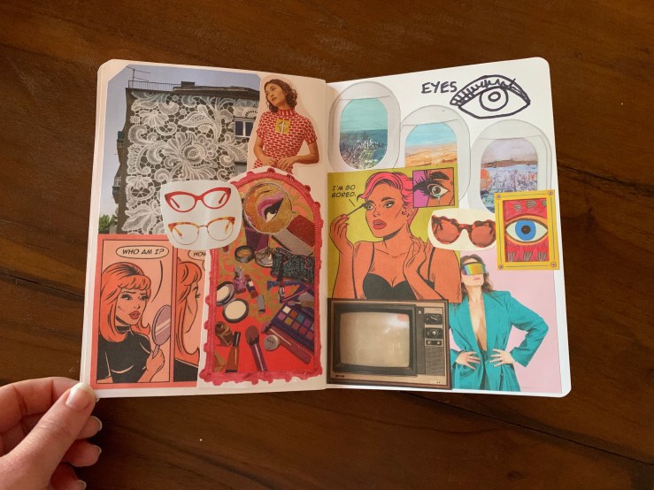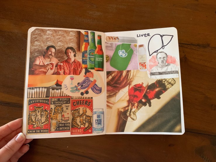 Before I share, I want to provide you with a bit of context. The title of my work is ‘My Body Image: Dissected’. Basically, I selected 13 organs and dedicated two pages to each organ. In the top right hand corner I have drawn the organ then created a collage that, to me, represents that organ.
