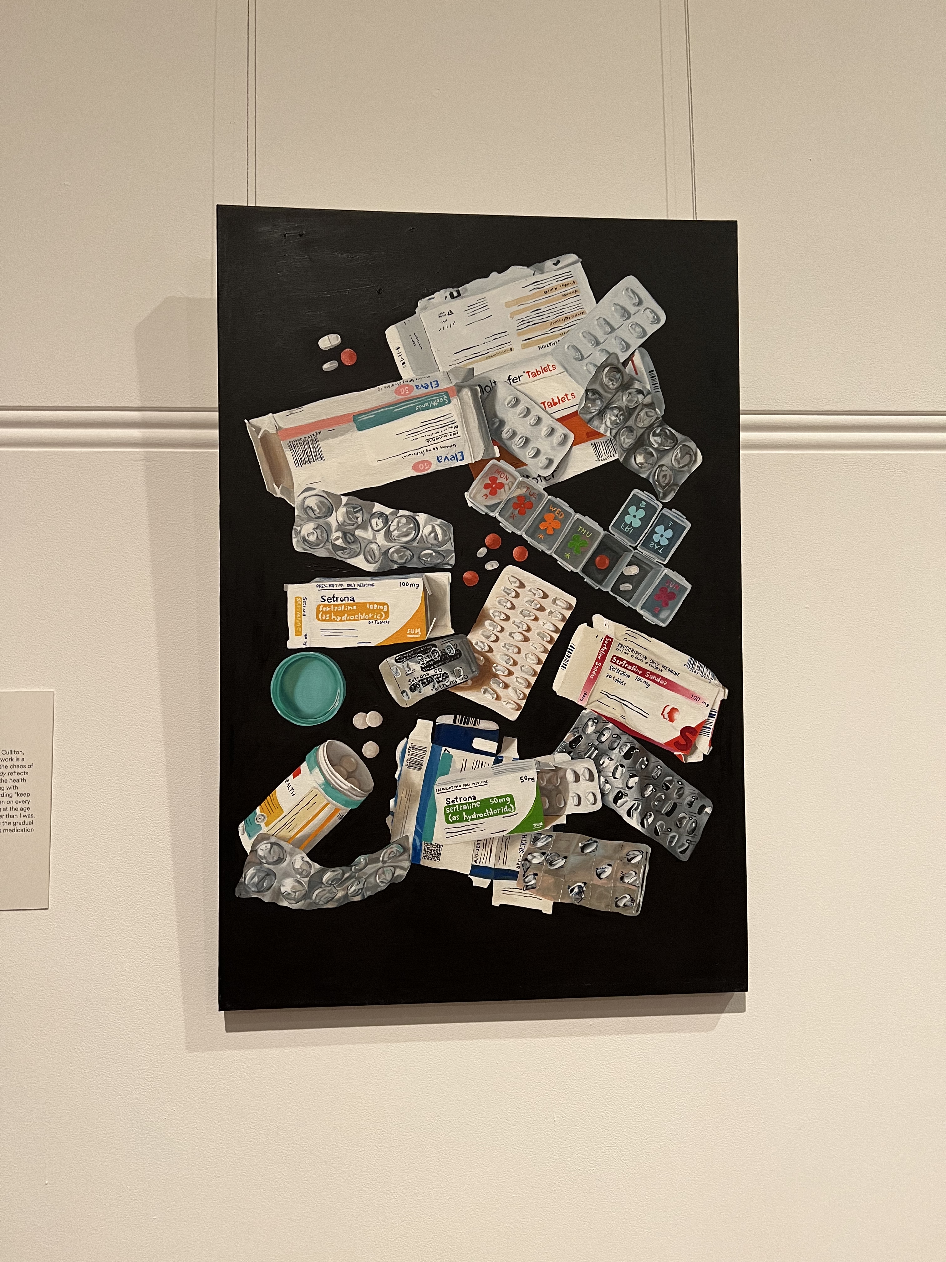 In the end, I went with Candy by Finnity McHoull. It serves as a reflection on the healthcare system and how medication that states ‘keep out of reach of children is increasingly being prescribed to them. I want to directly quote the artist here from their artwork label, “the title of the artwork mirrors the gradual loss of childhood innocence as medication replaces candy.” Seriously powerful artwork.