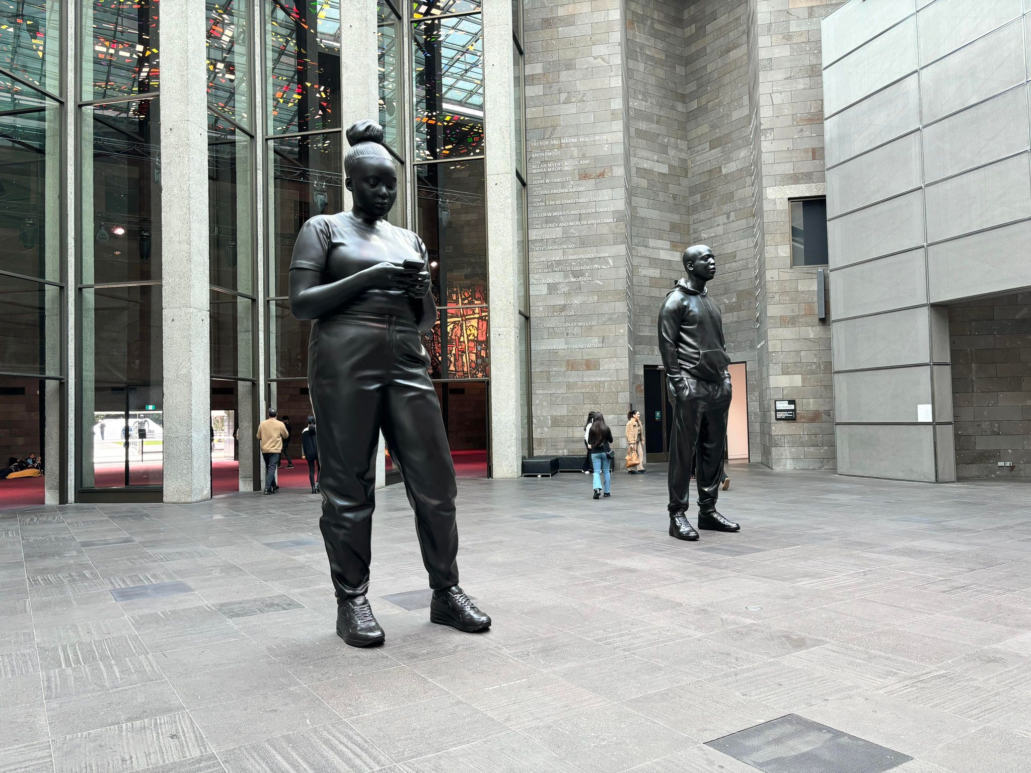 In the middle of the entrance foyer are two large bronze sculptures by artist Thomas J Price, a British contemporary artist. They are on display for the Triennial, an exhibition showcasing the works of 120 contemporary artists, designers, and collectives. I had seen these sculptures online and was so disappointed to learn that the Triennial was only on until 7 April. Needless to say, it was a surprise when we entered and the statues were there. They are amazing to see in-person.