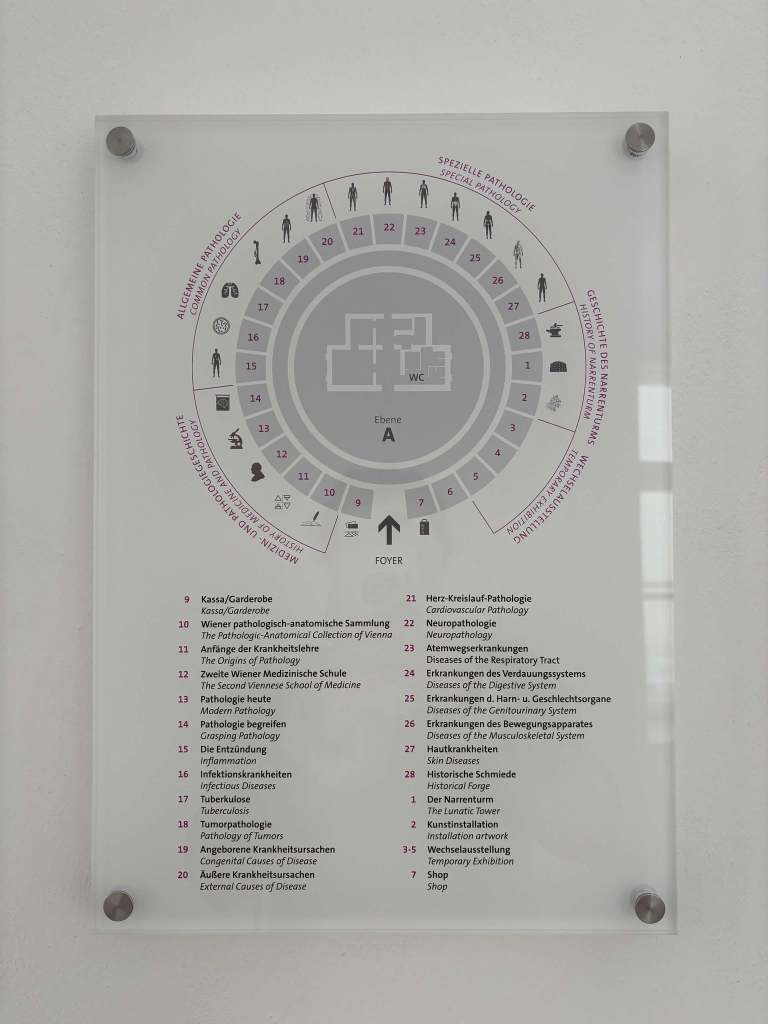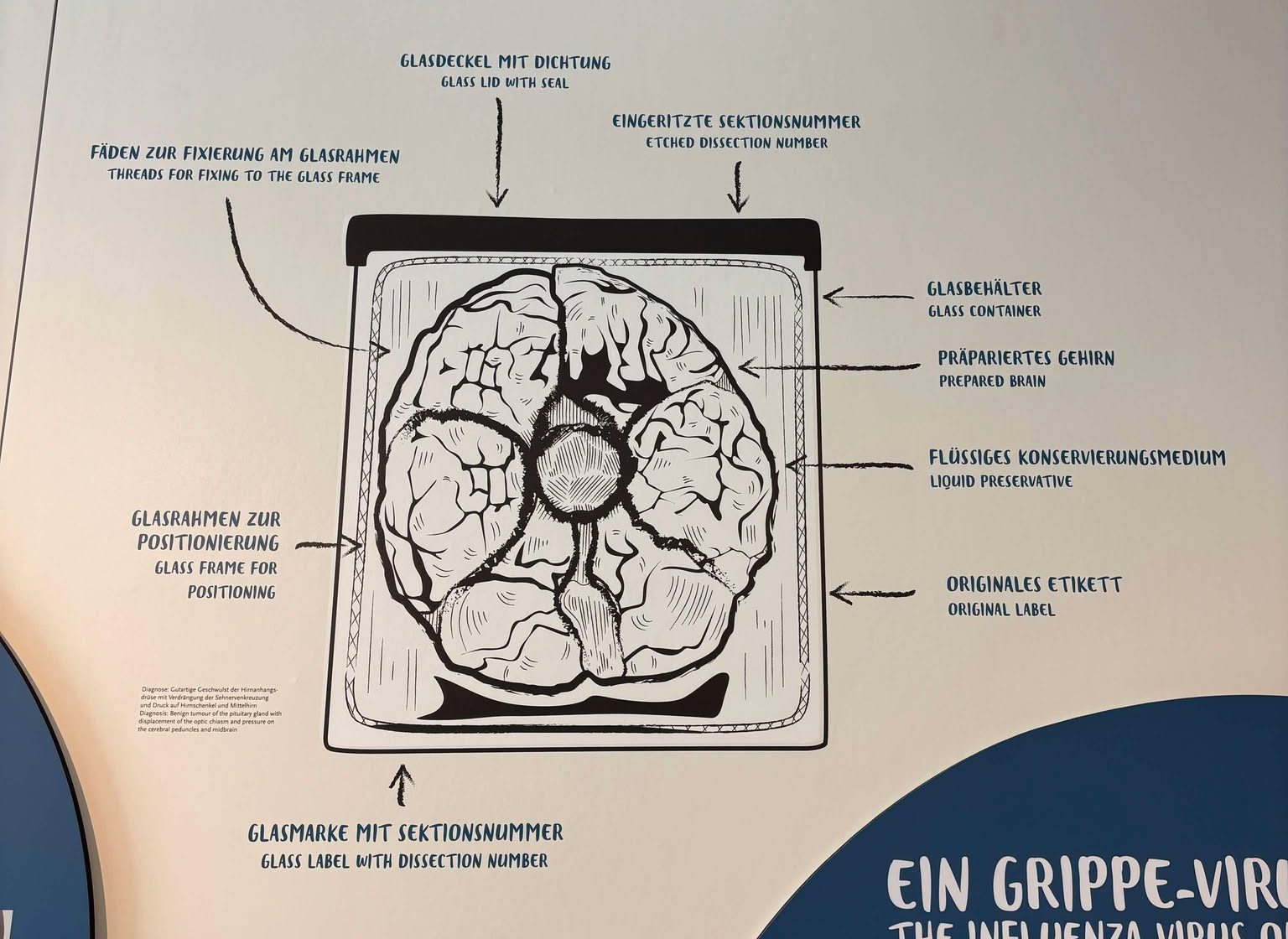 On the next level are eight permanent exhibition rooms covering topics such as becoming a doctor, medicine and technology, the hospital, moulages, Nazi medicine, histology/pathology, disease outbreaks, and genetic diseases.