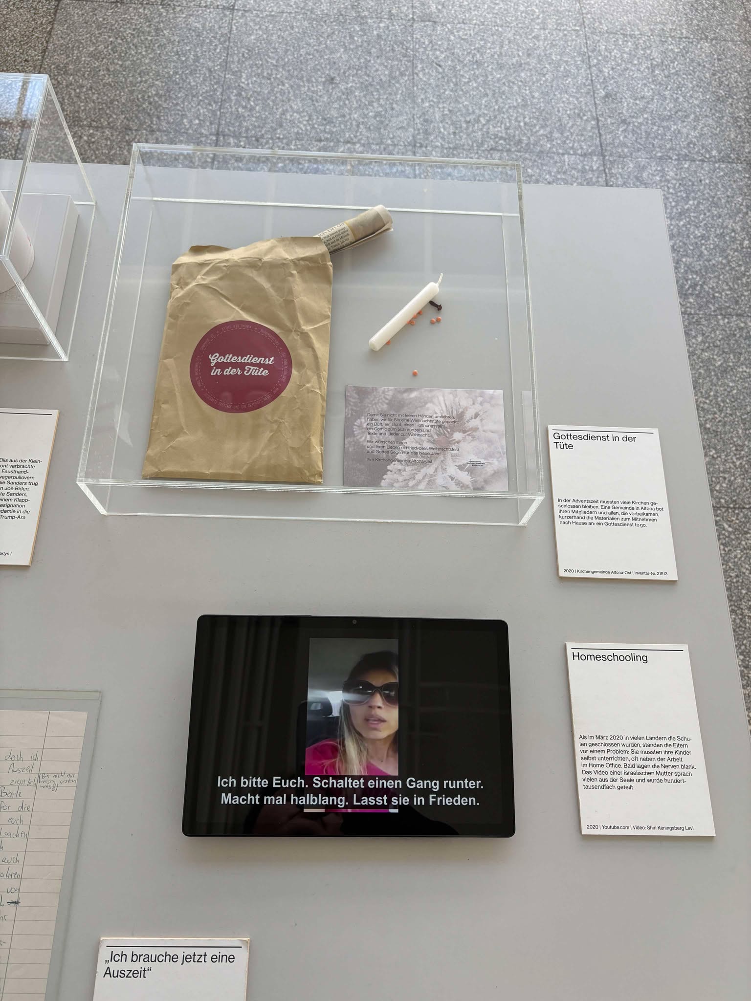 I chose this particular digital element because it is a screen playing TikTok videos on homeschooling, created by Hamburg residents. Great to see how a digital collection can add to a display.