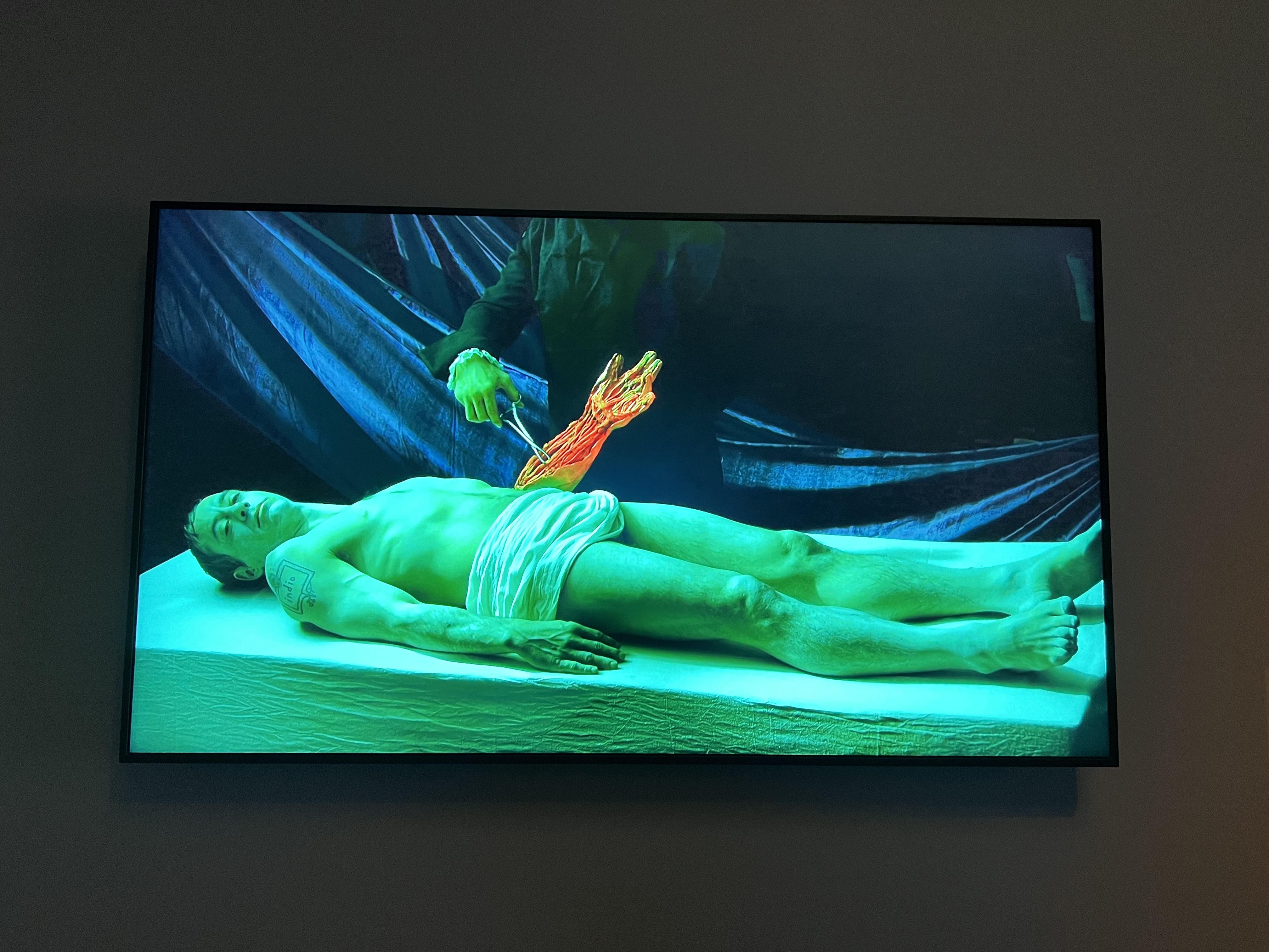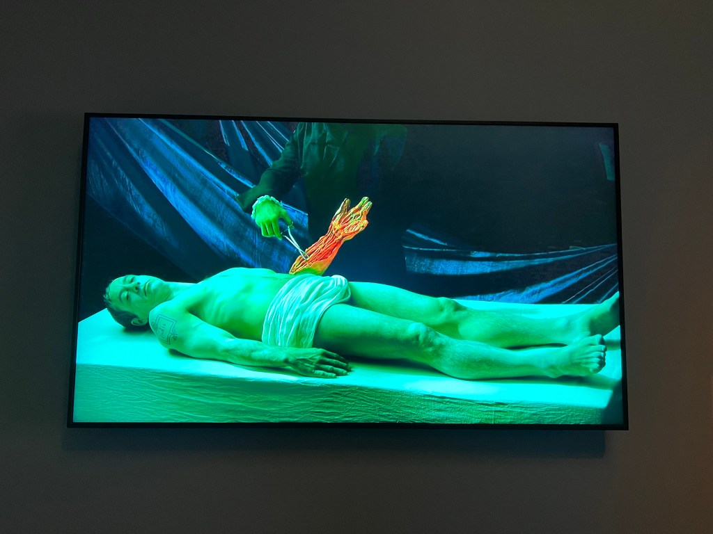 One of the first things you see entering this chapter is a huge sculpture of a woman sitting up in bed. We saw multiple people get a decent shock upon seeing it! There isn’t any context as to what this woman is thinking about or seeing, but she clearly looks puzzled or concerned. The thematic panel encourages visitors to think of what she can see. What invisible presence is causing her to look this way? It is so large and life-like – really dominates the space.