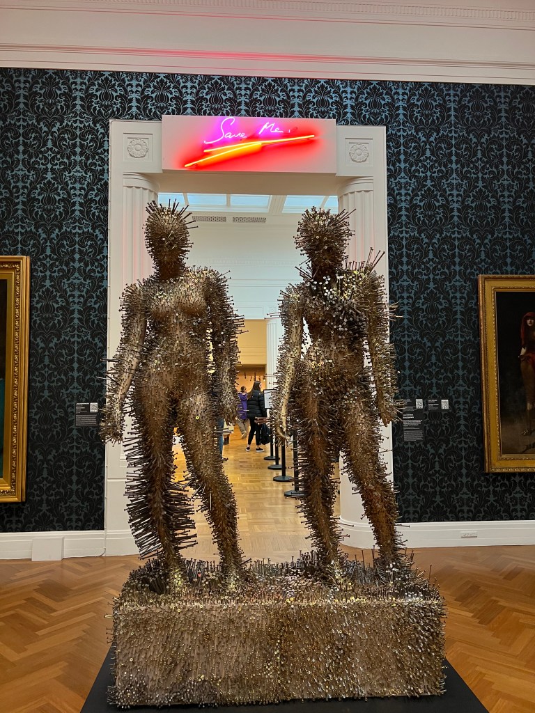 After reading the introductory panel I was excited to enter into the space and see exactly how this concept was going to work. The exhibition is divided into five chapters: Atmosphere, Shared, Burn, Invisible, and Change. Each chapter starts with a thematic panel that ties the works together and reflects on the broader theme. These panels are great to read before exploring the works as they build connections that would otherwise be missed. As you move through the chapters, there are changes, such as a change of lighting, to help remind you of which chapter you’re in. The Burn chapter did achieve burning my eyes with a large neon sculpture so I felt that might have been a bit too literal.