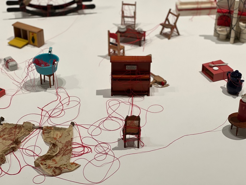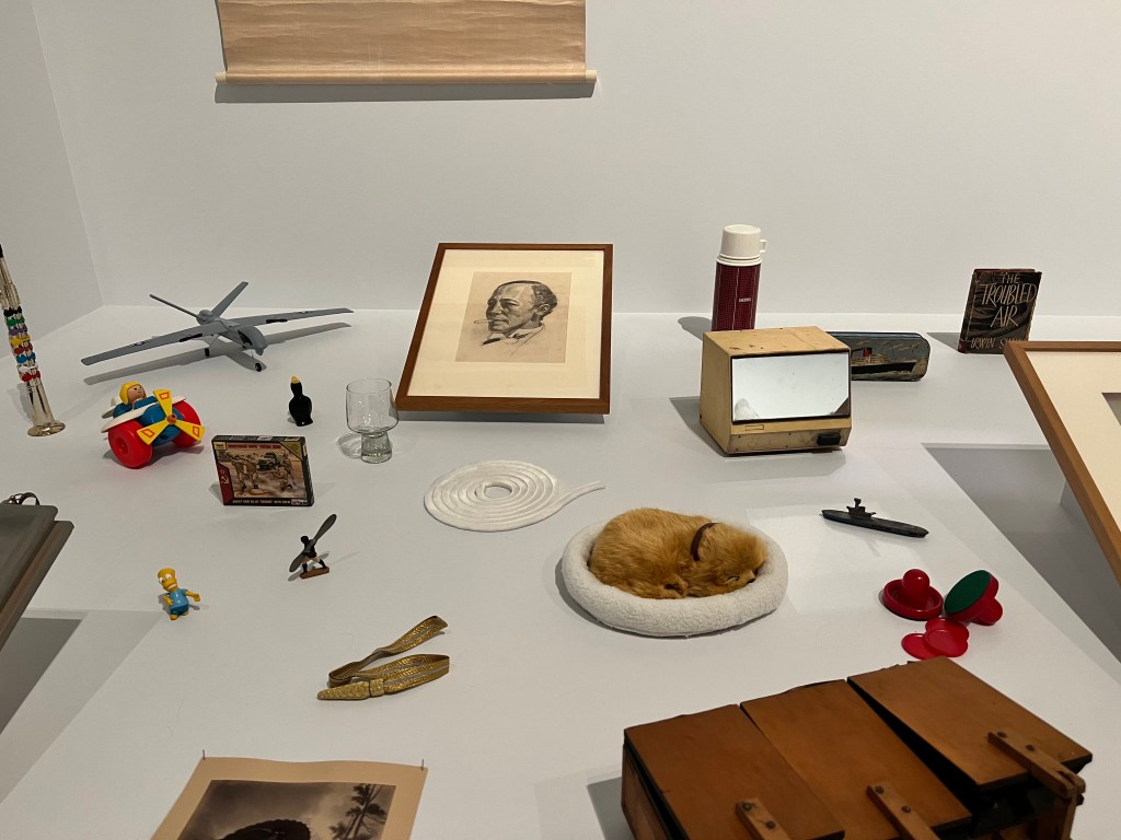 The final work for the entire exhibition is The Air Lock by Patrick Pound. All the items and artworks relate, in some way, to air. Your task is to work out how. Some are more obvious than others. It was really interesting looking through all the knick-knacks and discovering new ways to think of air. Obviously, the anatomical model of the lung was my favourite. Although the little dog in a dog bed came a close second. A great way to end the exhibition – displaying seemingly disconnected objects that all, however, speak to the central theme.